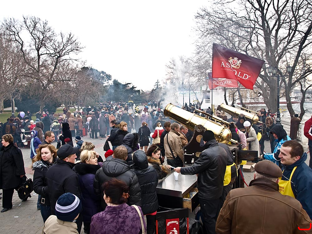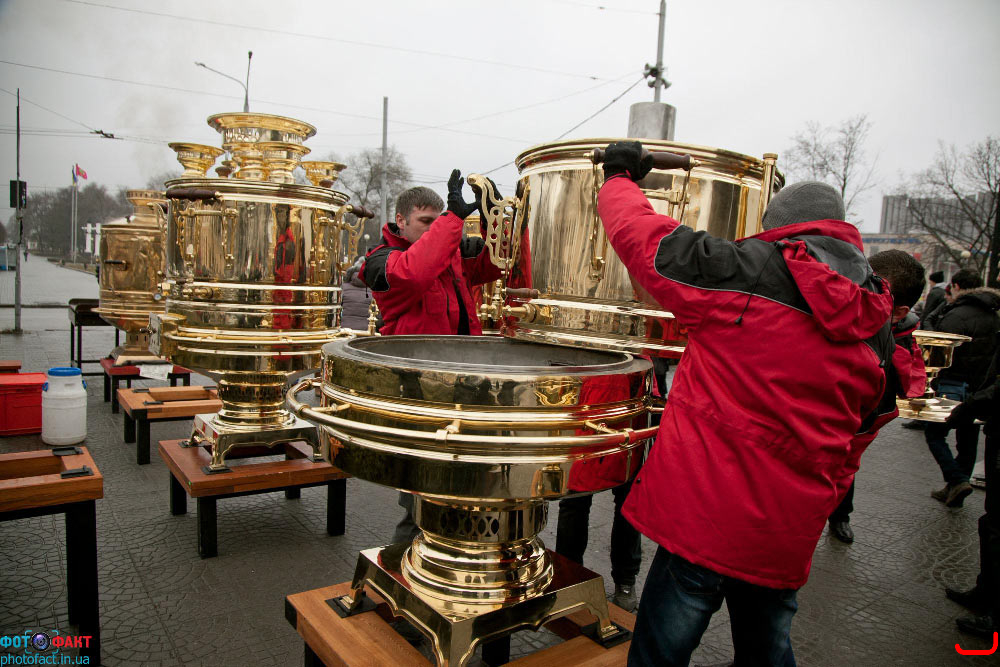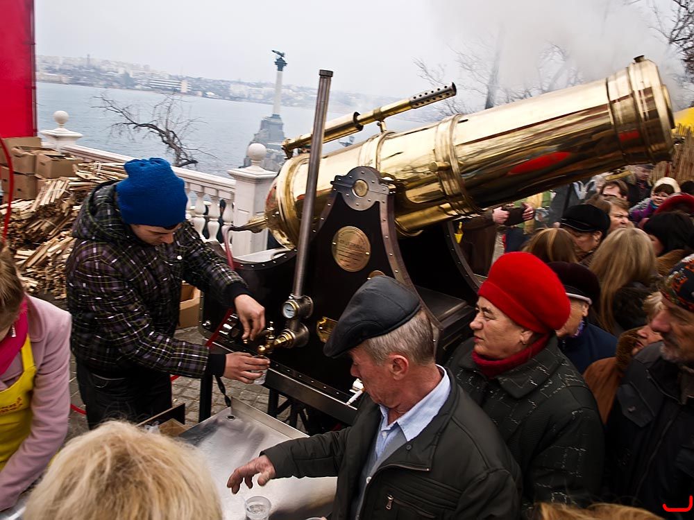 Жители Севастополя установили новый рекорд Украины и мира, выпив 2000 литров чая (10 тысяч порций по 200 грамм) из двух самоварних пушек (не имеющих аналогов в мире) за 4,5 часа во время народных гуляний "Масленица - праздник весны", которые состоялись 06 марта на Приморском бульваре.