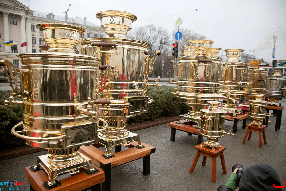 В центре Запорожья девять огромных самоваров установили рекорд Украины