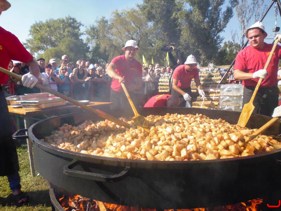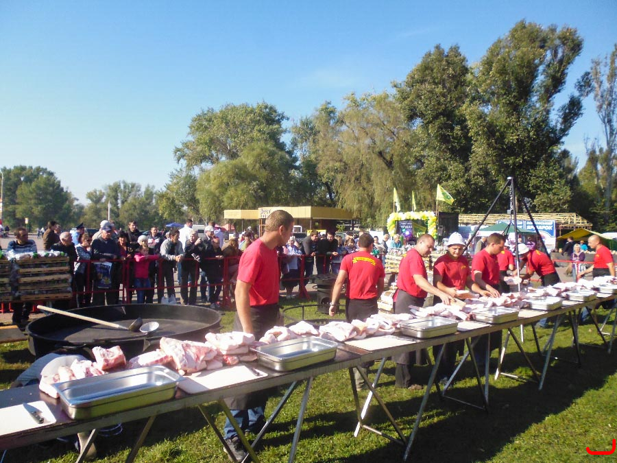 В Запорожье во время празднования дня города был установлен очередной гастрономический рекорд Украины. Команда «Запорожского самовара» приготовила самую большую запорожскую шкварчанку: в двухметровой сковородке было поджарено сала на 16,5 тыс. порций.