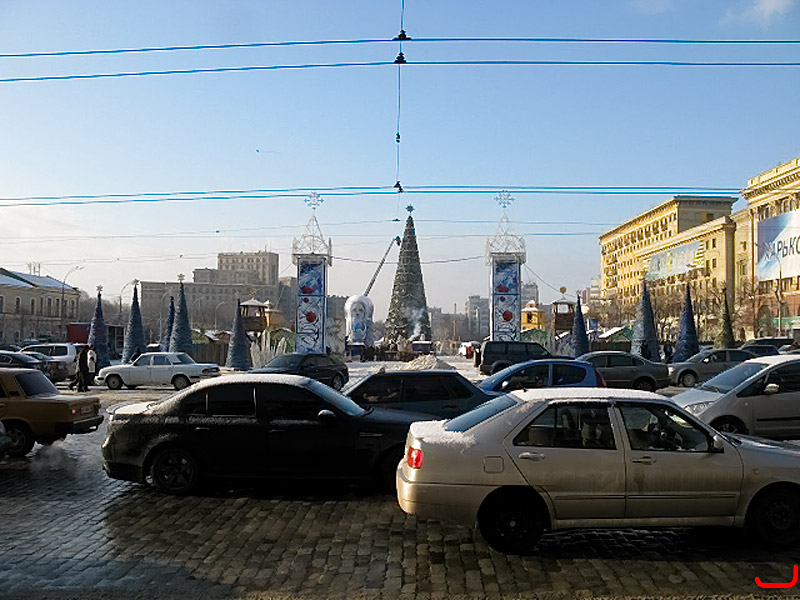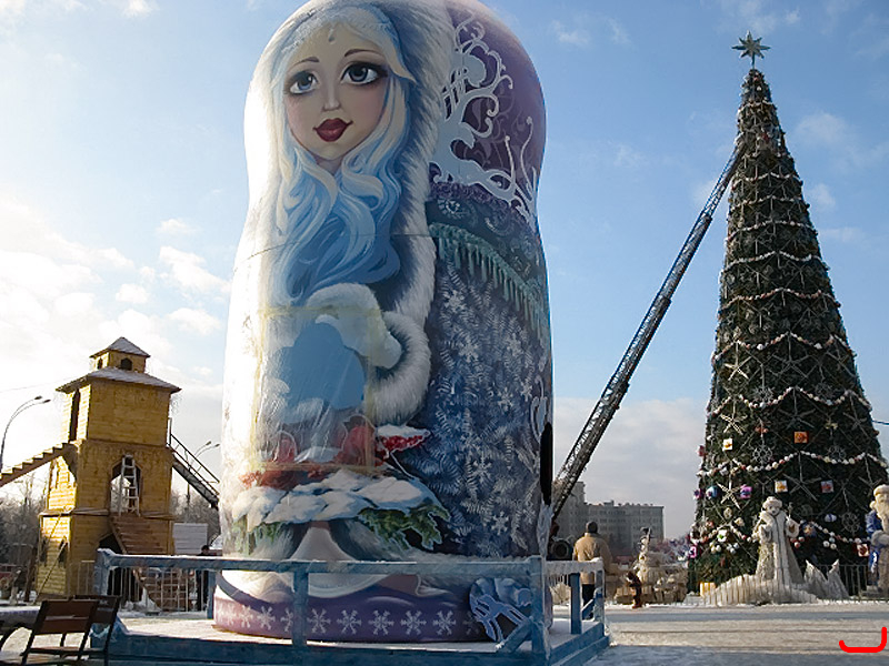 Утром 19 декабря на площади Свободы корреспондент «ВХ» застала новогоднюю ярмарку буквально в момент ее «рождения». На мостовой уже были расставлены бревенчатые домики, в которых будет вестись торговля: их двенадцать – по количеству месяцев в году, и каждый оформлен соответствующим образом. Роспись избушек напоминает открыточный дизайн: на домике с надписью «Декабрь» нарисованы яркие гроздья рябины, на стене «Января» – еловая лапа и новогодние игрушки, на мартовском домике – радостные синички.