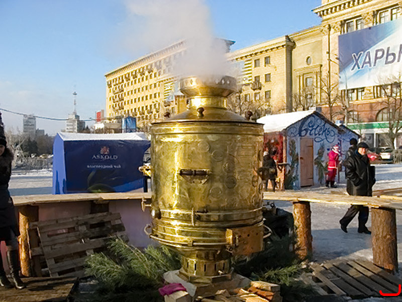 С новогодним самоваром в Харькове надо быть очень осторожным. В центре города открылась новогодняя ярмарка «Двенадцать месяцев». Здесь можно выпить чаю из огромного самовара, почревоугодничать и прикупить подарки под елочку.
