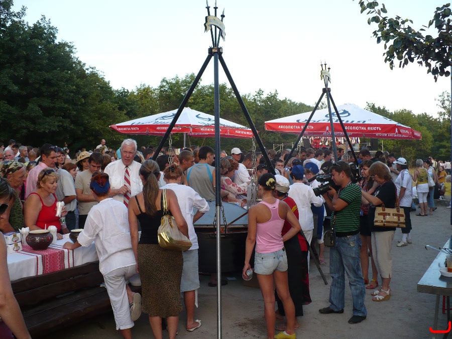 Борщ-чемпион готовился по древнему казацкому рецепту: на открытом костре в двух огромных котлах.