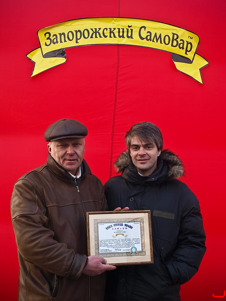 Жители Севастополя установили новый рекорд Украины и мира, выпив 2000 литров чая (10 тысяч порций по 200 грамм) из двух самоварних пушек (не имеющих аналогов в мире) за 4,5 часа во время народных гуляний "Масленица - праздник весны", которые состоялись 06 марта на Приморском бульваре.Почетные дипломы "Книги рекордов Украины" об установлении рекорда получили организаторы чаепития - торговые марки "Аскольд", "Казацкий мёд" и "Запорожский СамоВар".