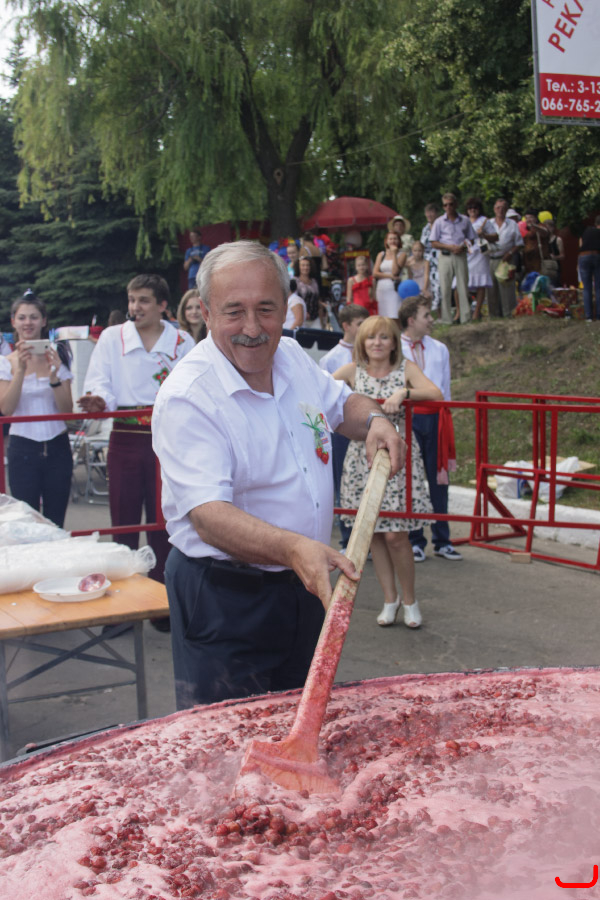 Более 4-х часов томилась на открытом огне смесь из 680 кг клубники и 500 кг сахара. Время от времени повара ТМ «Запорожский самовар», играя бицепсами, помешивали огромными деревянными веслами более полутонны ароматного лакомства. И, что очень порадувало эспертов, все это рекордное количество клубники было мытым и чищеным. Для этой трудоемкой работы было задействовано 80 студентов из местного аграрного лицея.