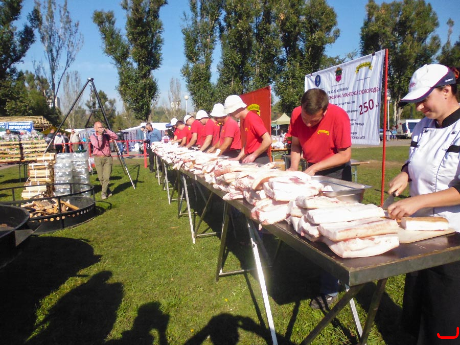 Как заявили представители книги Рекордов Украины, запорожцам удалось приготовить самую большую шкварчанку, для которой использовали 275 кг сала. Объем готового продукта - 268 л.